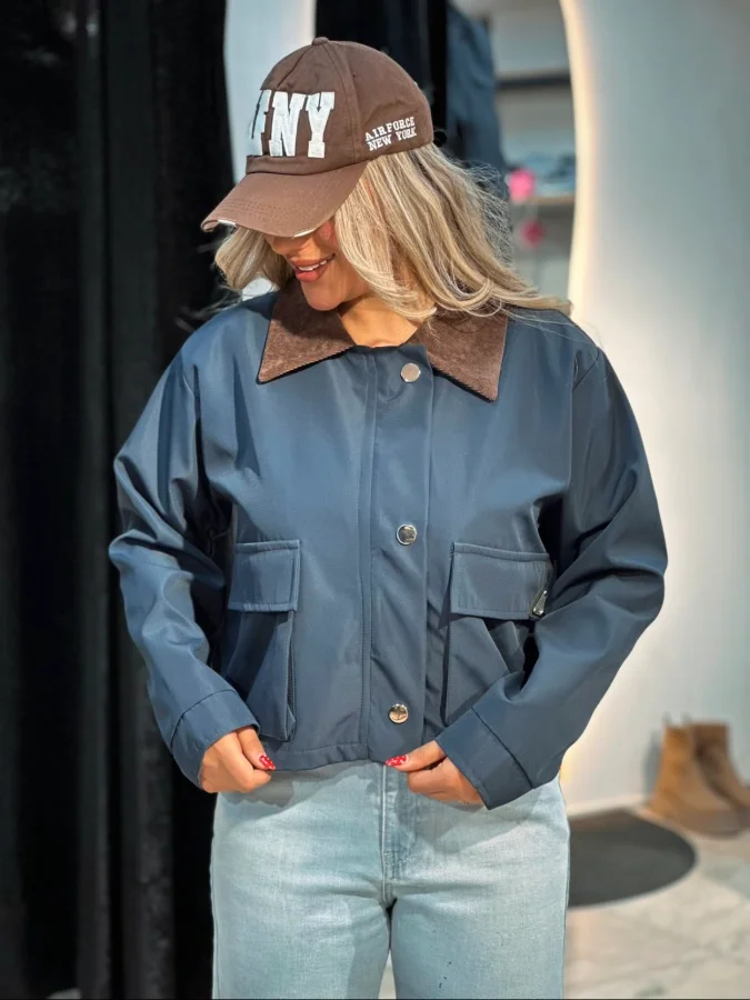 - یقه کبریتی متمایز: جزئیاتی خاص و لطیف که این کاپشن بامبر را از نمونههای مشابه جدا میکند و به آن عمق بصری میبخشد.