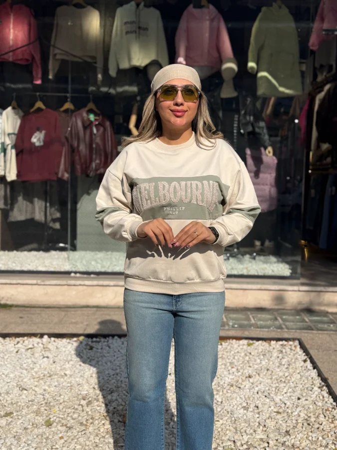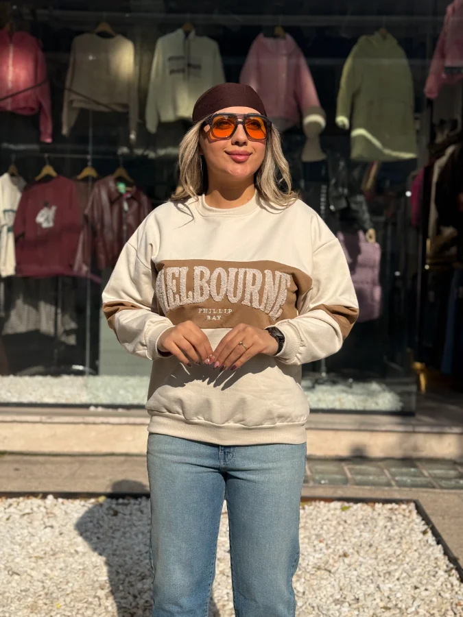 - طراحی مدرن و جذاب: طرح چاپی برجسته “MELBOURNE” و جزئیات رنگی کنتراستدار در سه ترکیب جذاب (کرم/مشکی، کرم/سبز زیتونی، کرم/قهوهای) برای استایلی بهروز و شیک.